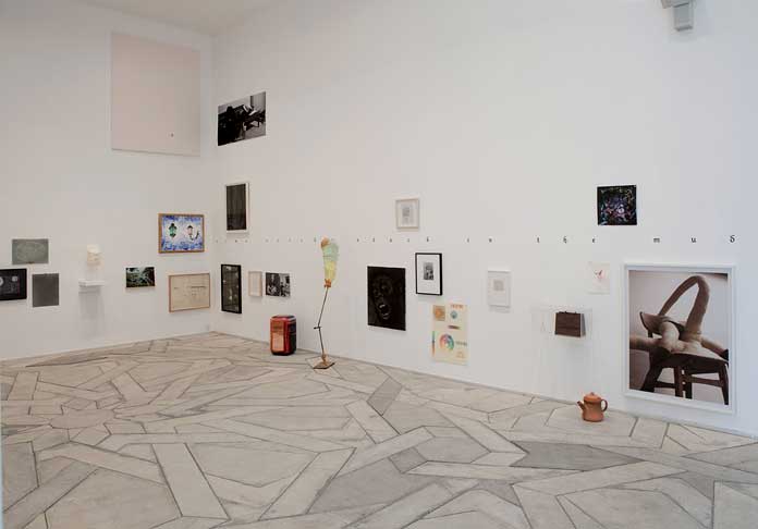 Special Guest Stars. installation view Andy Boot (AU), Bjørn Nørgaard, Christine Ödlund (SE), David Tibet (GB), Emil Westman Hertz, Franz West (AT), Fredrik Söderberg (SE), Henrik Olesen, Ib Braase, Jiri Georg Dokoupil (SZ), Judith Hopf (DE), Kristine Kemp, Lars Bent Petersen, Lawrence Weiner (US), Louise Bourgeois (FR), Marie Søndergaard Lolk, Marijke van Warmerdam (NL), Martin Jacob Nielsen, Olav Christopher Jenssen (NO), Pernille With Madsen, Rasmus Rosengaard, René Schmidt, Rolf Nowotny, Rosemarie Trockel (DE), Sarah Lucas (GB), Troels Wörsel, Vinyl Terror & Horror.