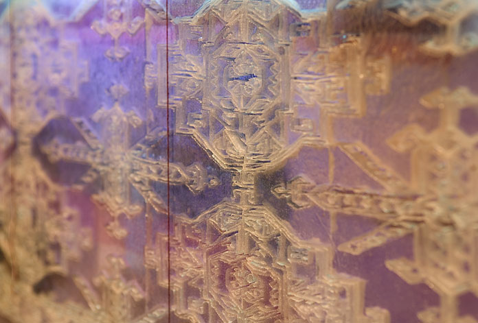 "where comes the lord comes the darkness bright" 2008ca. 90 x 123 x 7,5 cmPolyester, neon tube, knitting, crocheting, painted steel, acrylic textile.